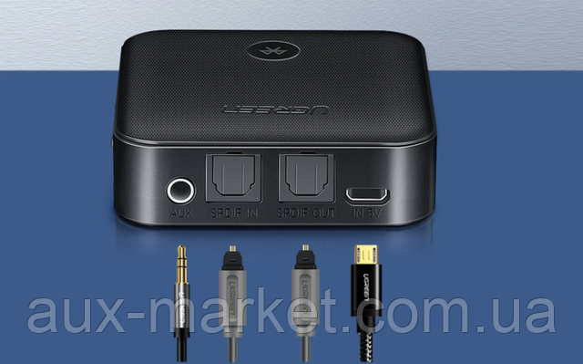 Bluetooth-адаптер, який працює на прийомі або передаванні. Дає змогу під'єднати Bluetooth-навушники до телевізора. Робить бездротовими будь-які колонки або навушники. Завдяки кодеку aptX звук передається без втрати якості. Під'єднання через AUX або Toslink.
