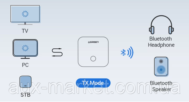 У цьому режимі можна під'єднати Bluetooth-колонки або Bluetooth-навушники до телевізора, плеєру або іншому пристрою, у якому немає Bluetooth.