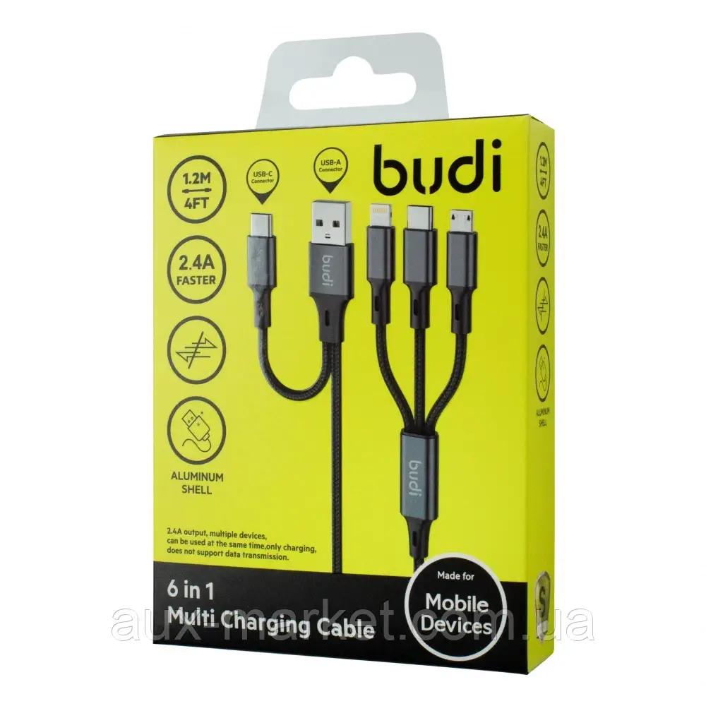 Кабель Budi DC203T5 Combo 6 in 1 |1.2m, 2.4A|